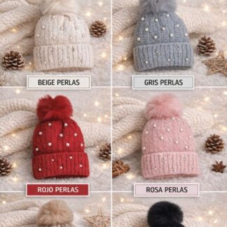 Gorro con perlas para bebe - Café claro