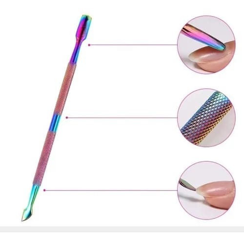 Bisturi para uñas con empujador de cuticula tornasol