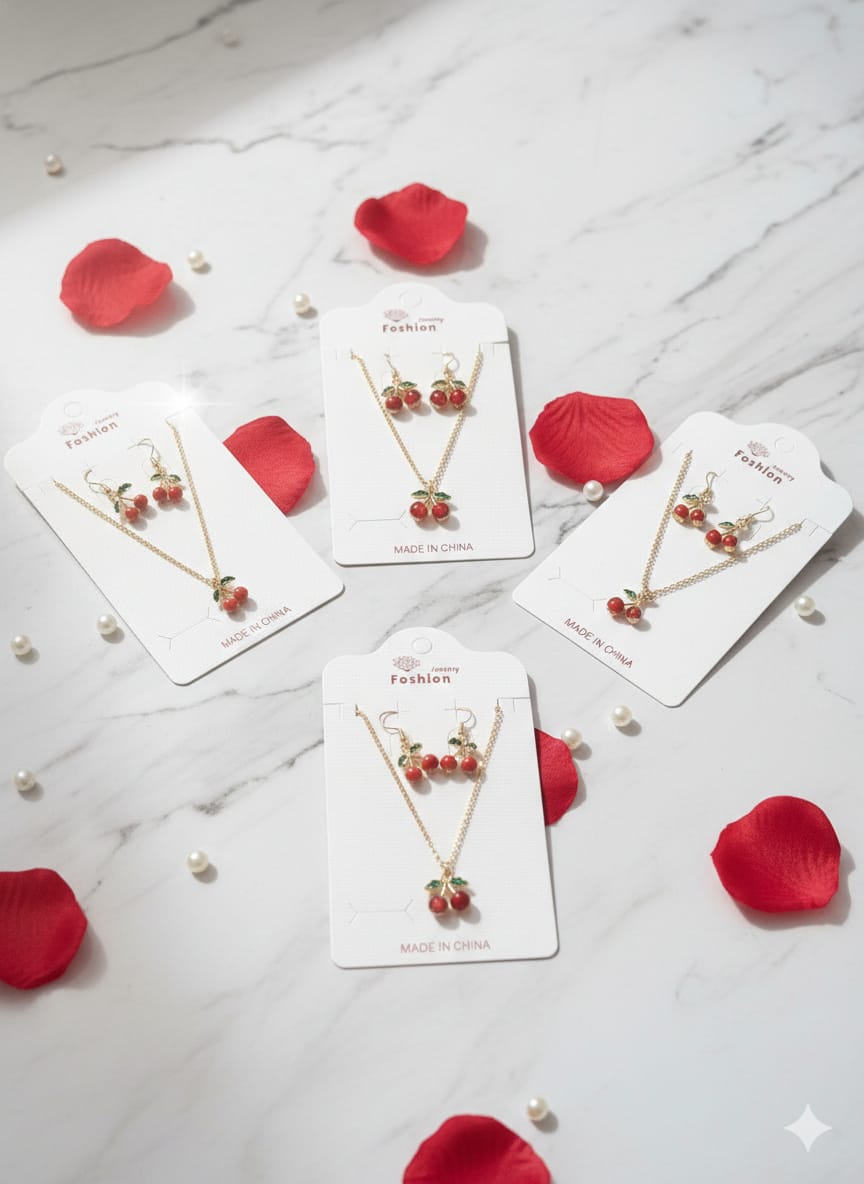 Collar y aretes de cereza $20 pz $180 por docena